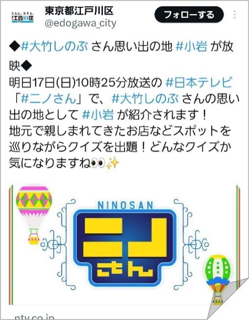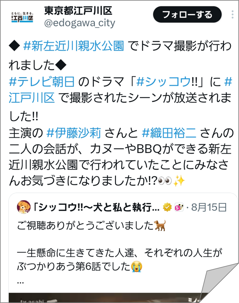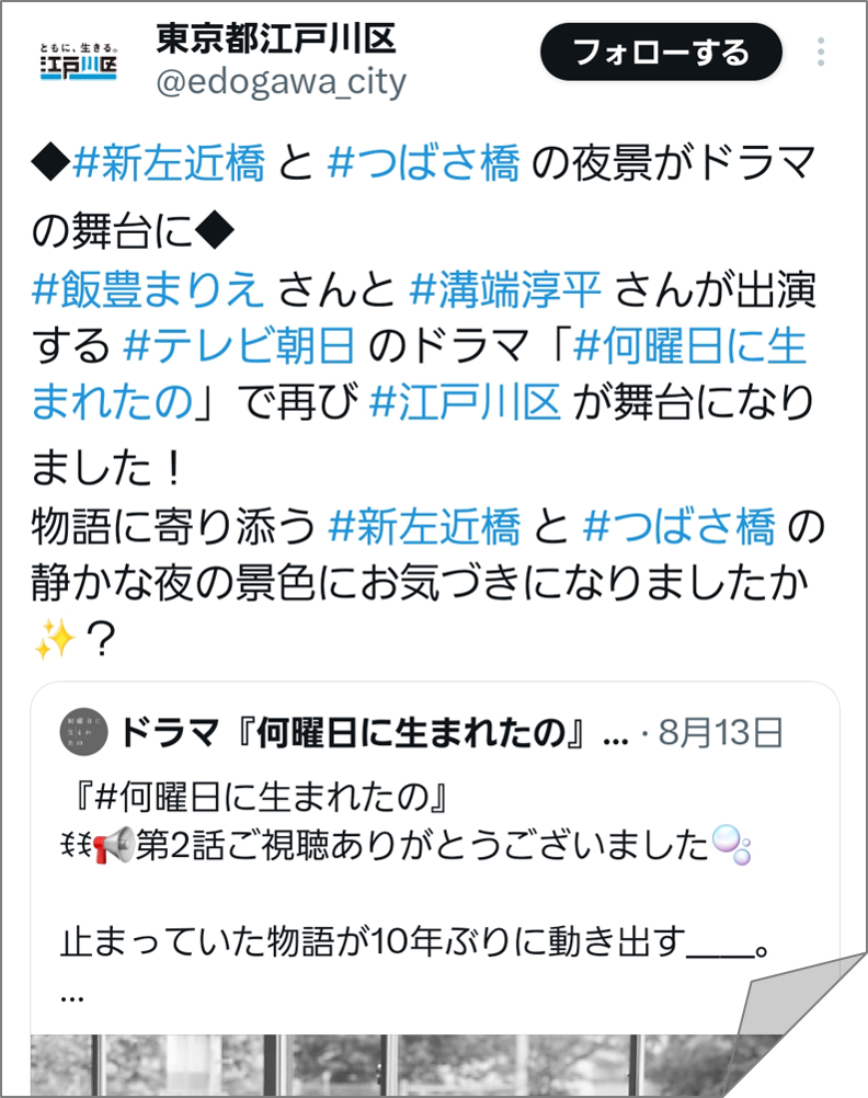 トップページ > くらし・手続き > 地域活動・コミュニティ > えどがわ地域情報局 > ロケーション撮影情報 > X(旧ツイッター)アーカイブ