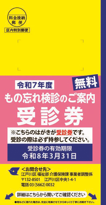 【対象】長寿健診などのフレイル質問票の結果により受診券が送付された、65・67・69・71・73・75・77・79・81・83歳(2025年7月31日時点)の区民の方 など