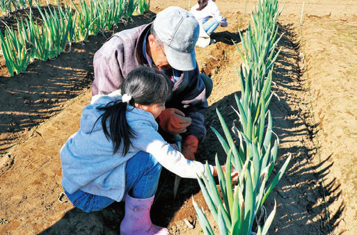 農家の方が作った小松菜、ネギの収穫体験ができます。