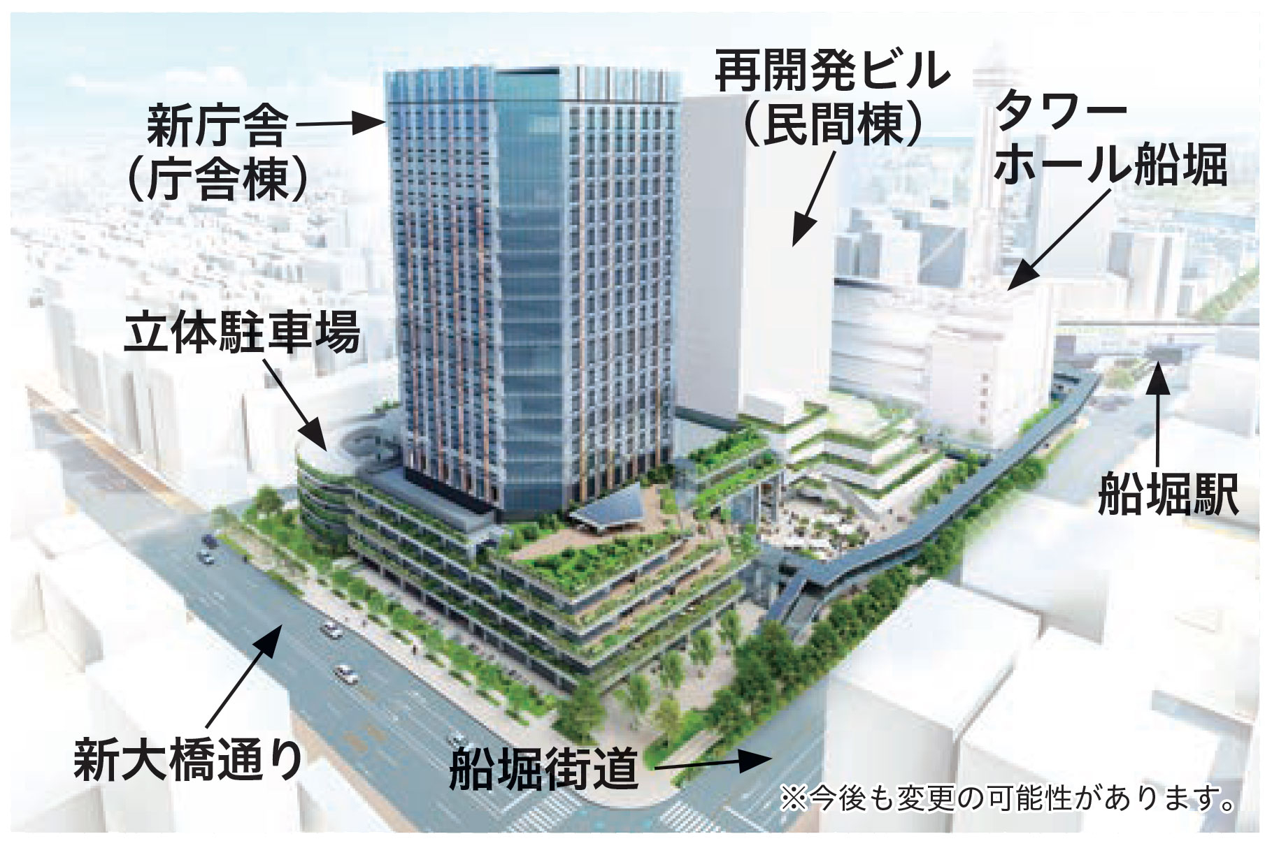 庁舎移転に伴う新庁舎の開庁予定日は、新庁舎整備と一体で進めている船堀四丁目地区市街地再開発事業のスケジュール見直しにより、2031年1月から2033年1~6月に変更しました。また、工事費についても、2025年2月にお知らせした約610億円から約694億円に変更しました。詳しくは区ホームページをご覧ください。