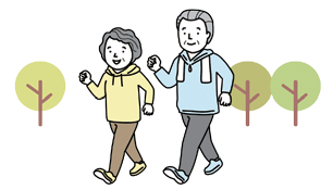 ウオーキングは生活習慣病の予防や改善の他、ストレス解消や認知症予防など、さまざまな効果があります。歩幅を広くして軽く息が弾むペースで歩く「速歩き」は心肺機能が高まり、下半身の筋力の維持・向上につながるため、日々のウオーキングに取り入れてみましょう。