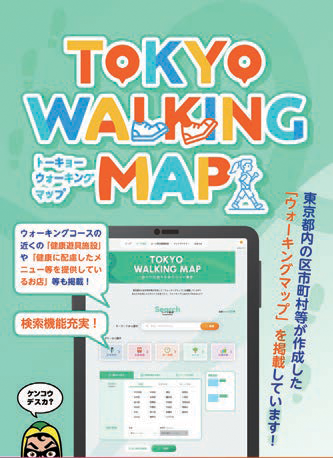 東京都が運営するポータルサイト「TOKYO WALKING MAP」では自分に合ったウオーキングコースを手軽に検索できます。区内でお気に入りのコースを見つけて、楽しく歩きましょう。詳しくはホームページ