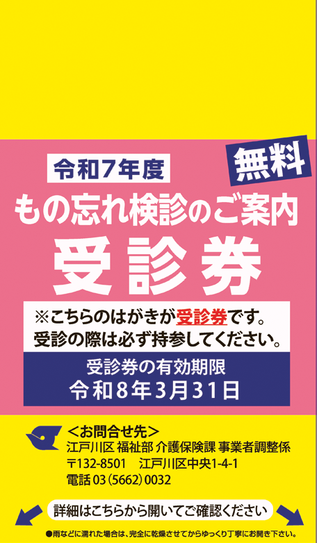 受診券(上図)が届いている方で、最近、もの忘れが気になる方は、この機会にお早めの受診をお願いします。