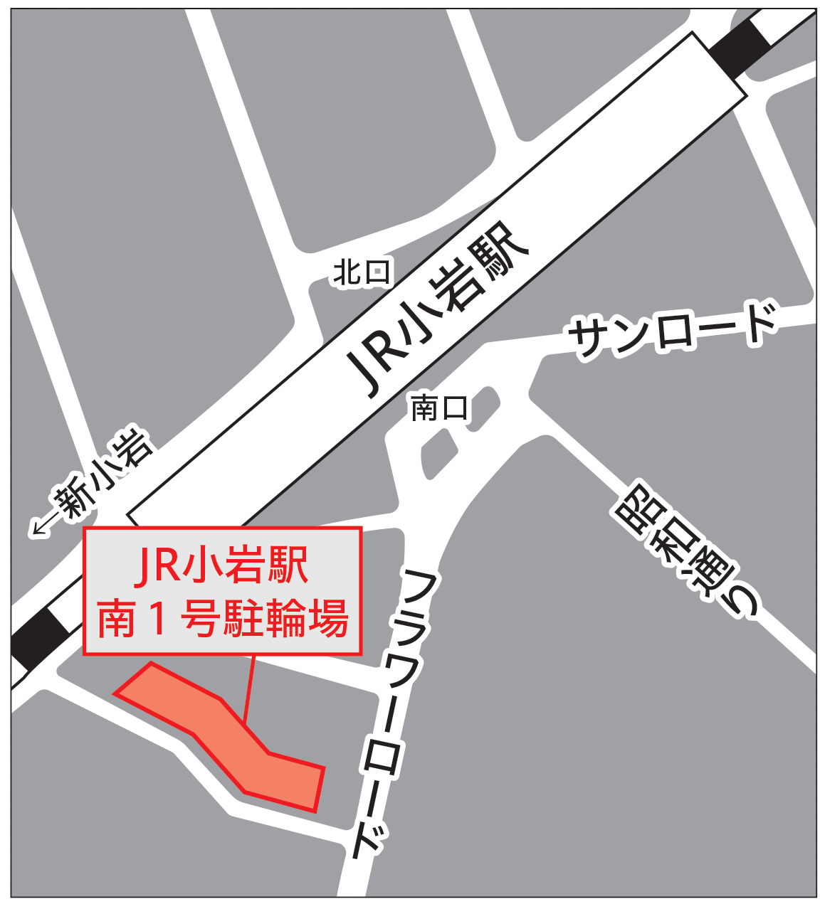 JR小岩駅南口の駅前に公共駐輪場がオープンします。ぜひご利用ください。