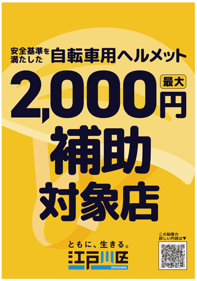 安全基準を満たすヘルメットを購入する際の費用を、最大2000円補助します。インターネット通販(電子申請が必要)での購入も対象です。