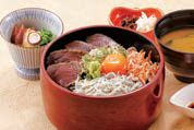 【料金】鰹と釜揚げ桜海老としらすの三色丼→2600円、江戸川御膳→3400円