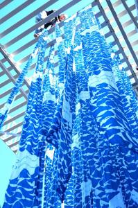 冬晴れの青空に穏やかな陽射しが差し込んだ本日(16日)、同工場の干し場「やぐら」では、染め上げた生地を干す作業が行われ、何枚もの生地が風にはためいていました。手ぬぐいは、かさばらず使い勝手がよいという光寿さんは、「時代に流されず昔ながらの柄で作っているところが魅力です。ぜひ多くの人に使ってほしい」と話しました。