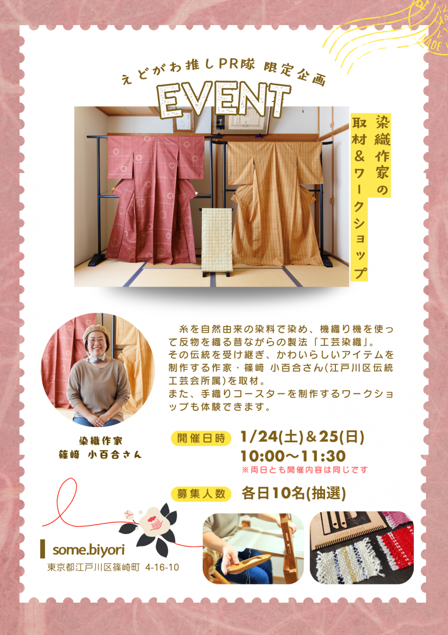 (注)どちらも同じ内容になります。いずれかの日程にのみご参加ください。 - 【会場】工房「some.biyori」(江戸川区篠崎町 4丁目16番10号)