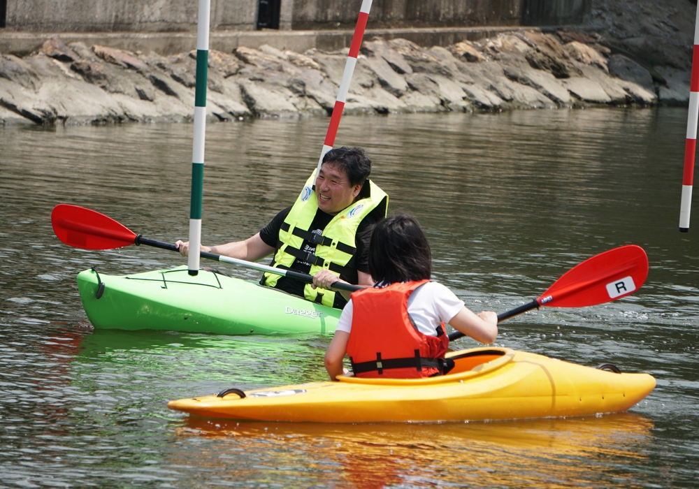 トップページ > シティインフォメーション > 区長室 > 区長フォトダイアリー > 2019年(令和元年) > 8月 > カヌー初体験! 新左近川親水公園カヌー場【2019(令和元)年8月1日】