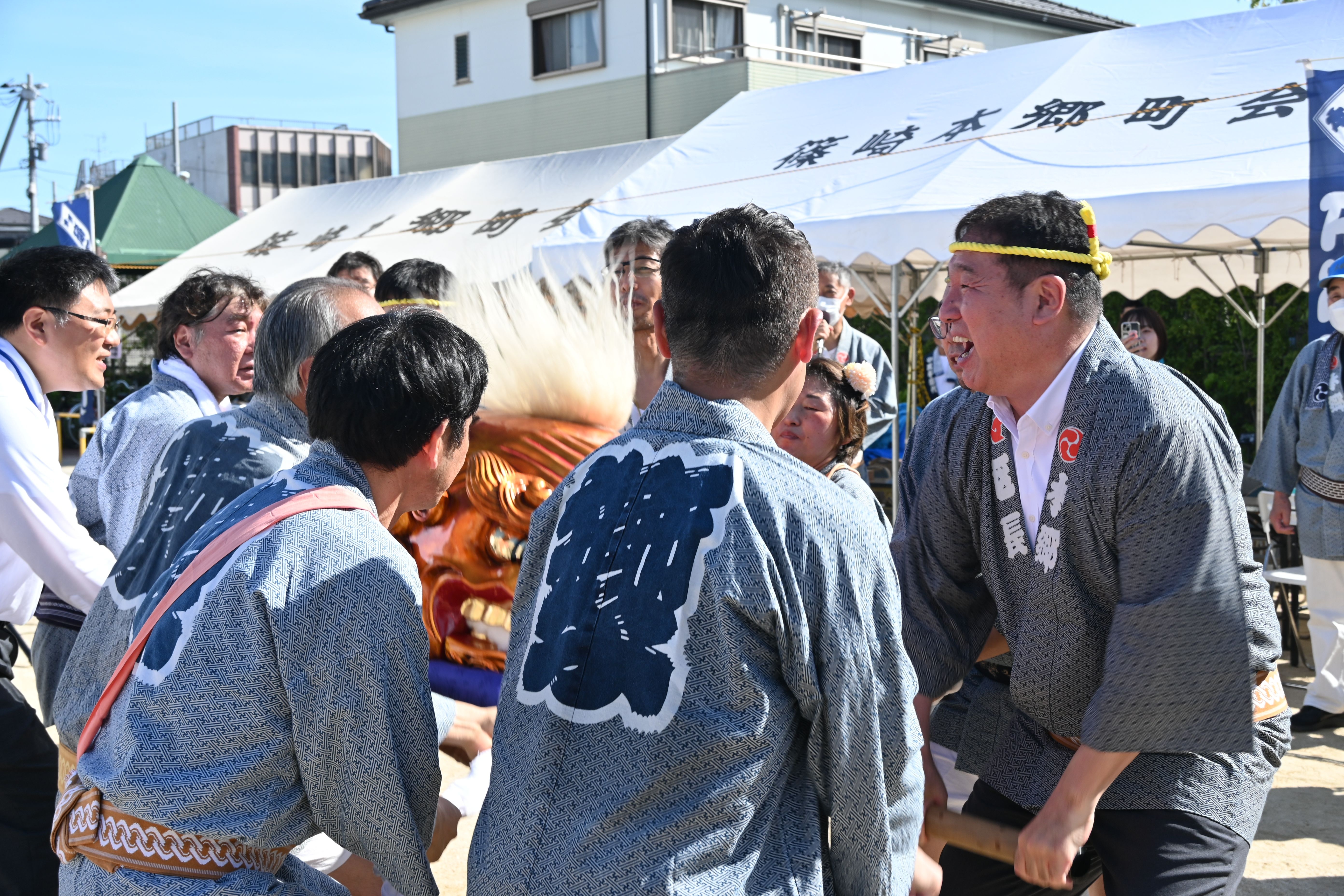 私も担がせていただきました。威勢よく「あらっ、あらっ!」という掛け声とともに、獅子頭を上下に激しく揺らしながら回り、獅子頭が再び正面を向いたところで、頭上高く担ぎ上げます。一緒に担いだ皆さまの熱い思いを感じることができました。
