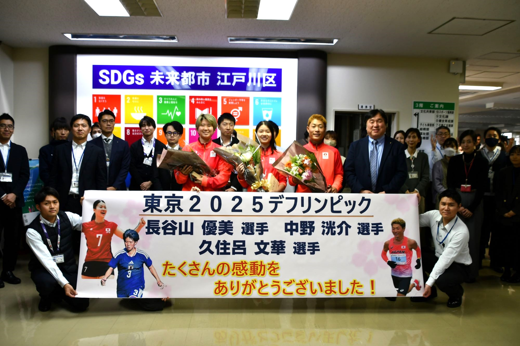 12月24日、今年の11月に行われた「東京2025デフリンピック」に出場された区内在住の選手の皆さまとお会いし、お話を伺いました。