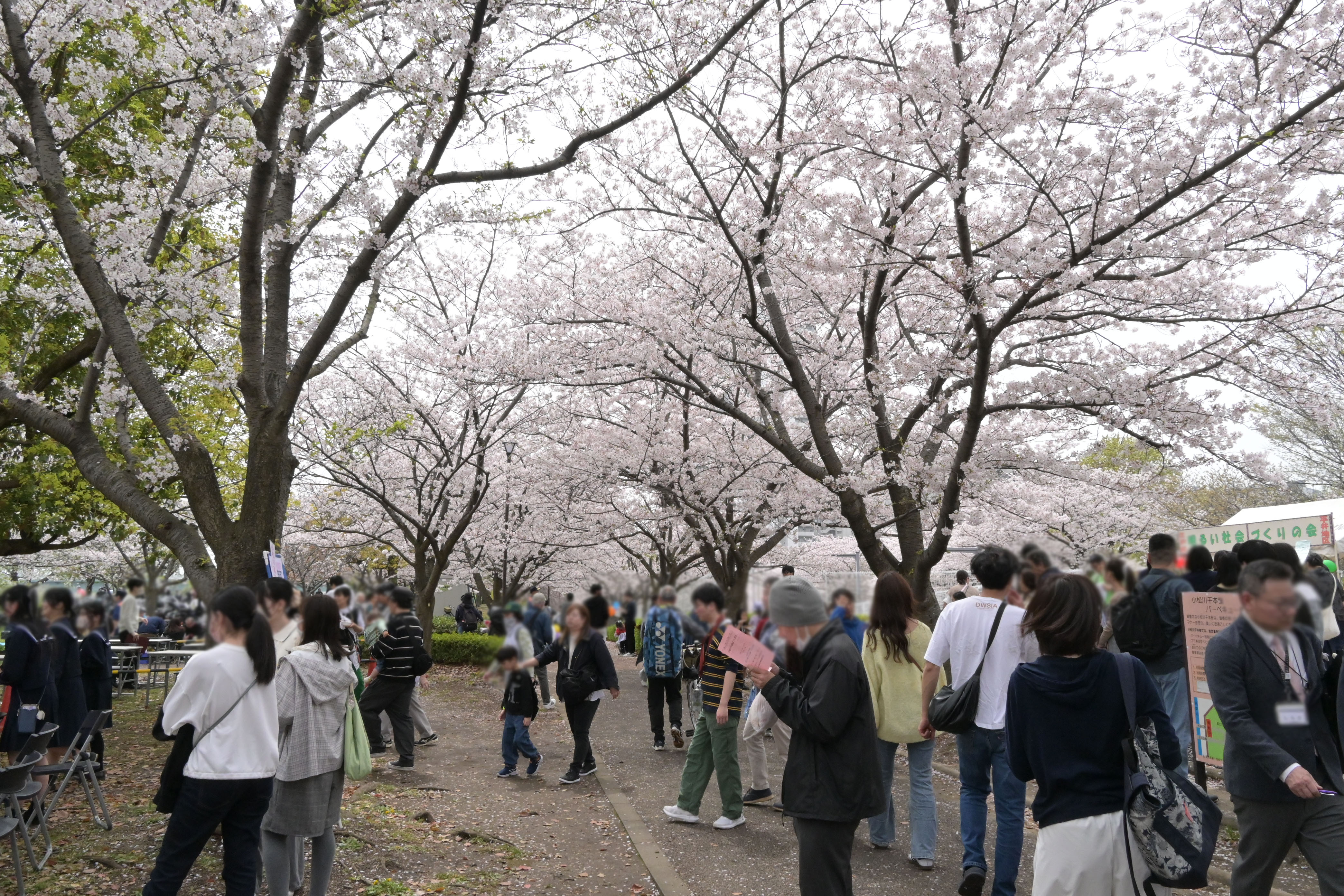 また、4月5日には都立大島小松川公園にて小松川千本桜まつりが開催されました。こちらの桜も新川と同様、日ごろより地域の皆さまが一本一本愛情をそそぎ、守り育ててくれています。当日はお天気が心配されましたが、春らしい陽気に包まれてすばらしいまつり日和となりました。