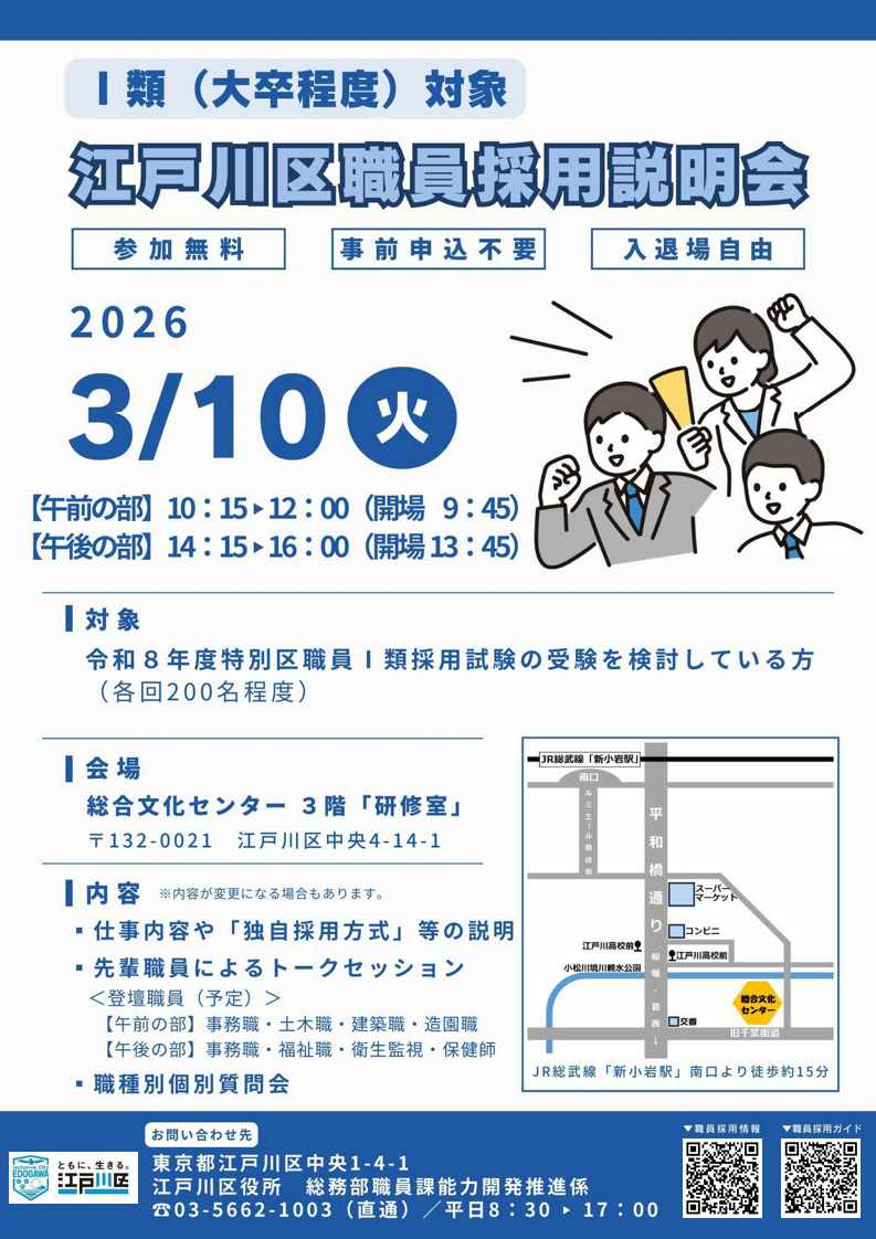 トップページ > シティインフォメーション > 人事・採用情報 > 江戸川区職員採用 > 採用説明会 > 江戸川区職員採用説明会【1類対象】