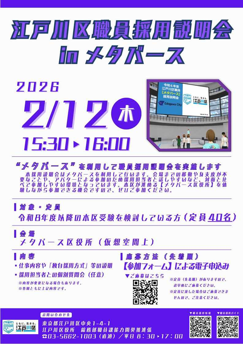 トップページ > シティインフォメーション > 人事・採用情報 > 江戸川区職員採用 > 採用説明会 > 江戸川区職員採用説明会 in メタバース