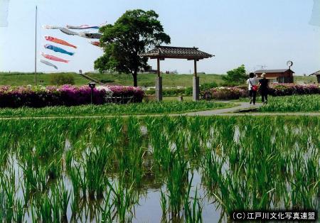 江戸川河川敷に広がる小岩菖蒲園は、地元の方から寄贈された花菖蒲をもとに昭和57年6月に開園しました。回遊式の庭園になっており、5~6月には100種類 約50,000本の花菖蒲が咲き誇り、都会のオアシスとして都内名所の一つになっています。菖蒲田周辺にはフジバカマなどさまざまな野草がみられます。