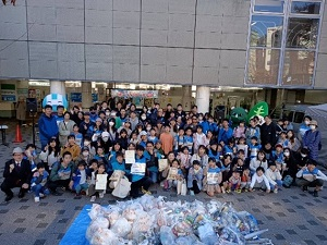 駅前での環境啓発イベント、子どもたちへの環境教育の一環としてごみ拾い大会を開催しました。