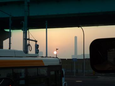 新江東清掃事務所と夕日