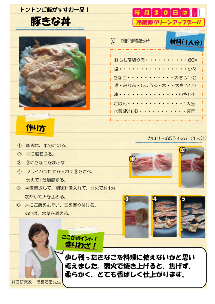トップページ > くらし・手続き > ごみ・リサイクル > 食品ロス削減の取り組み > えどがわ食べきり推進運動 > 行長万里の30・10食べきりレシピ > 2019年(平成31年)度 > 2月29日 豚きな丼
