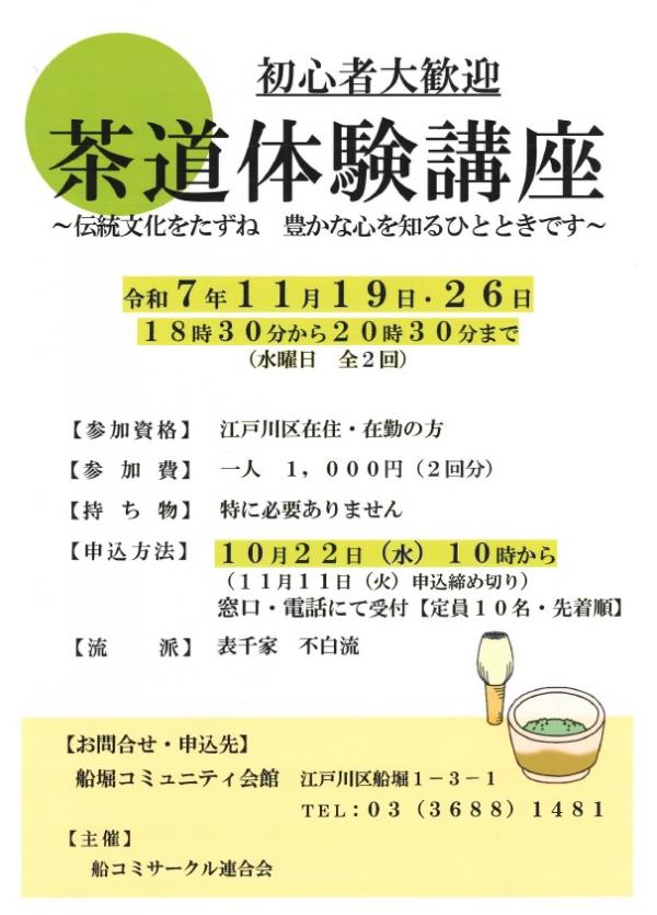 トップページ > スポーツ・文化・観光 > 文化 > えどがわ文化コンシェルジュ > 文化活動情報検索サイト > 茶道体験講座