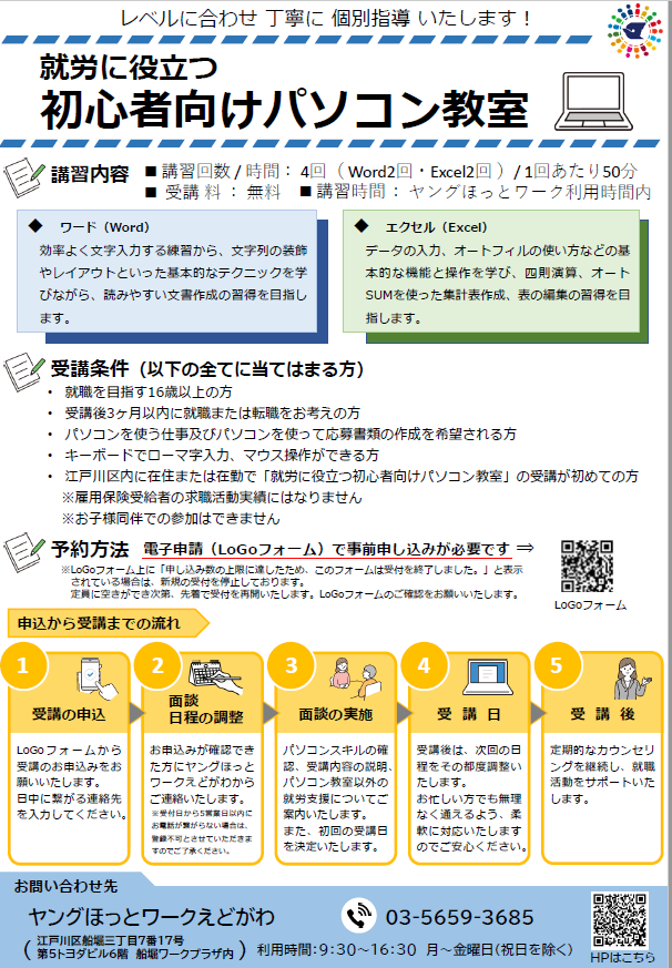 就職を目指す16歳以上の方を対象に相談員による各種支援をおこなっています。