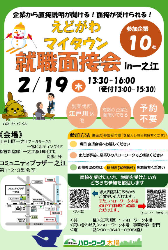 この面接会は江戸川区とハローワーク木場の共催で行います。
