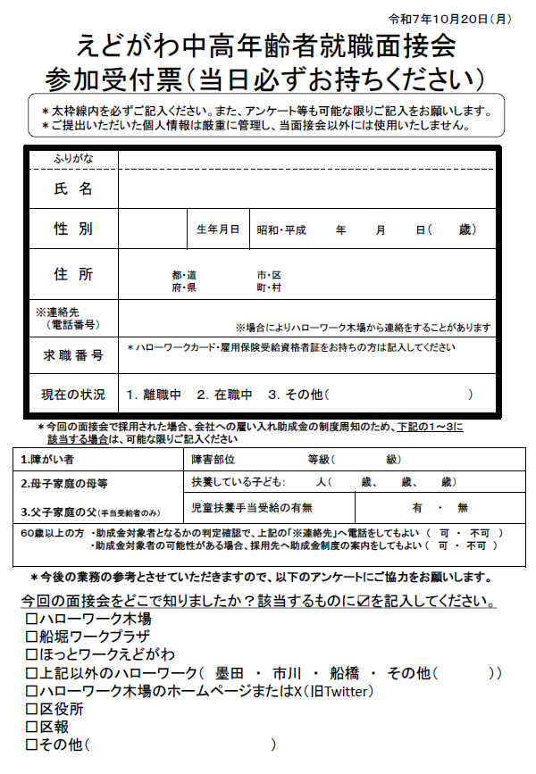 トップページ > しごと・産業 > 仕事・就労支援 > ミドル向け就労支援事業 > えどがわ中高年齢者就職面接会