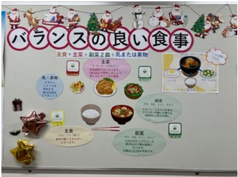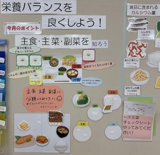 店内で、「栄養バランスの良い食事」「主食・主菜・副菜を知ろう」の展示やイベントが開催されました。