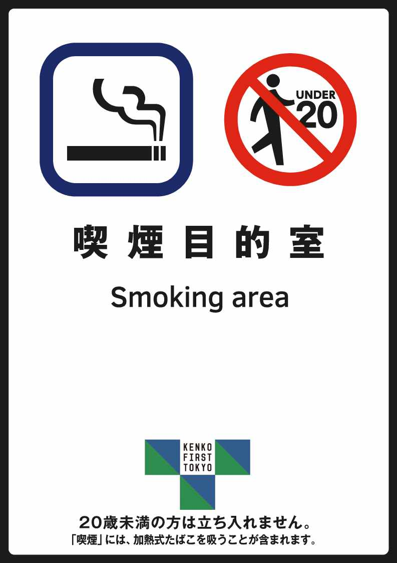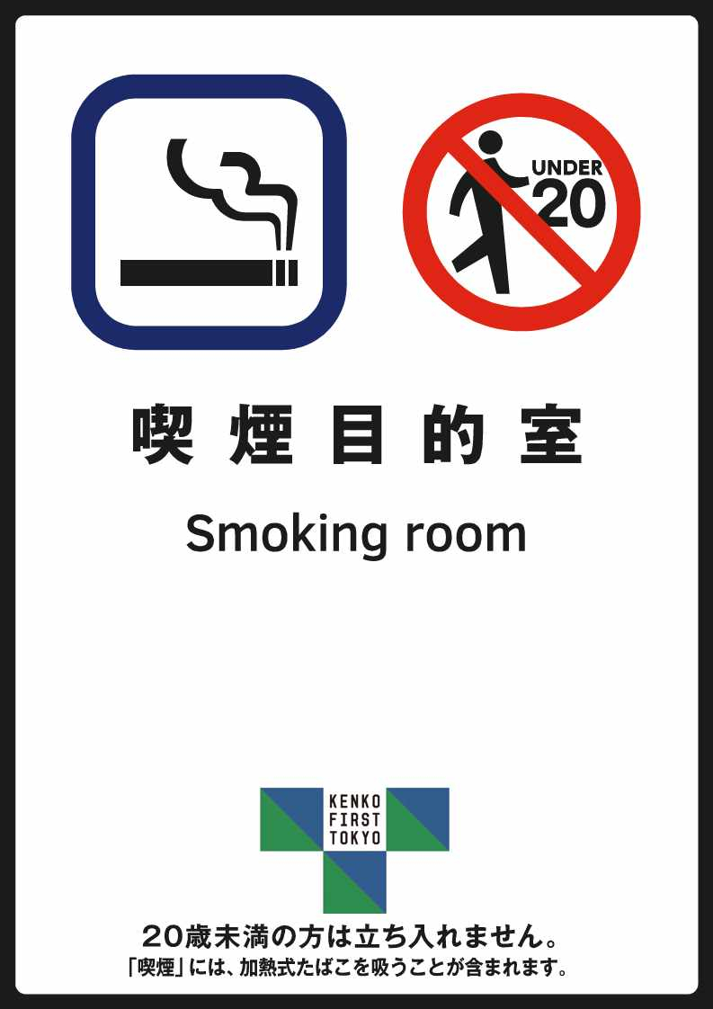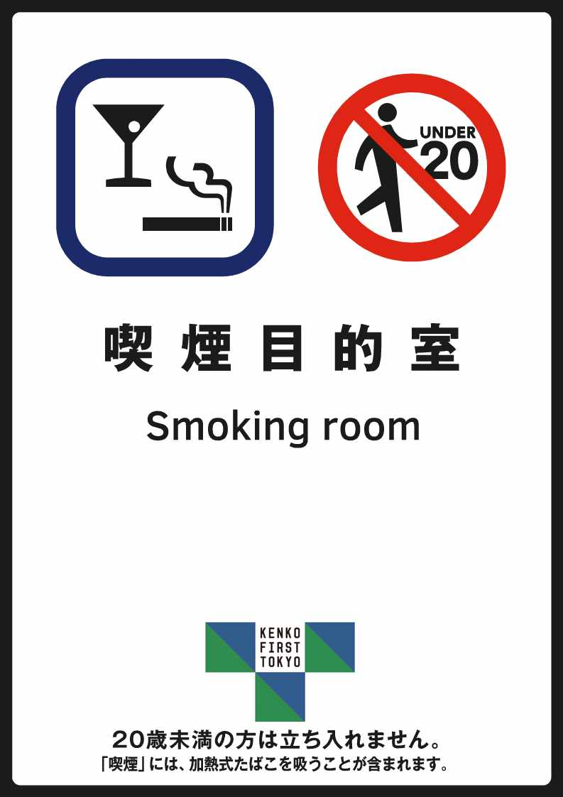 その場所が「喫煙を目的とする場所であること」及び「20歳未満の者は立ち入り禁止であること」の2点が一目でわかるようにする必要があります。