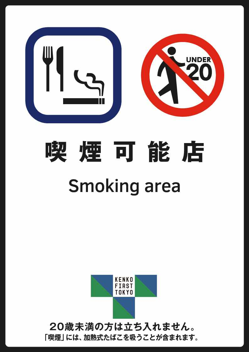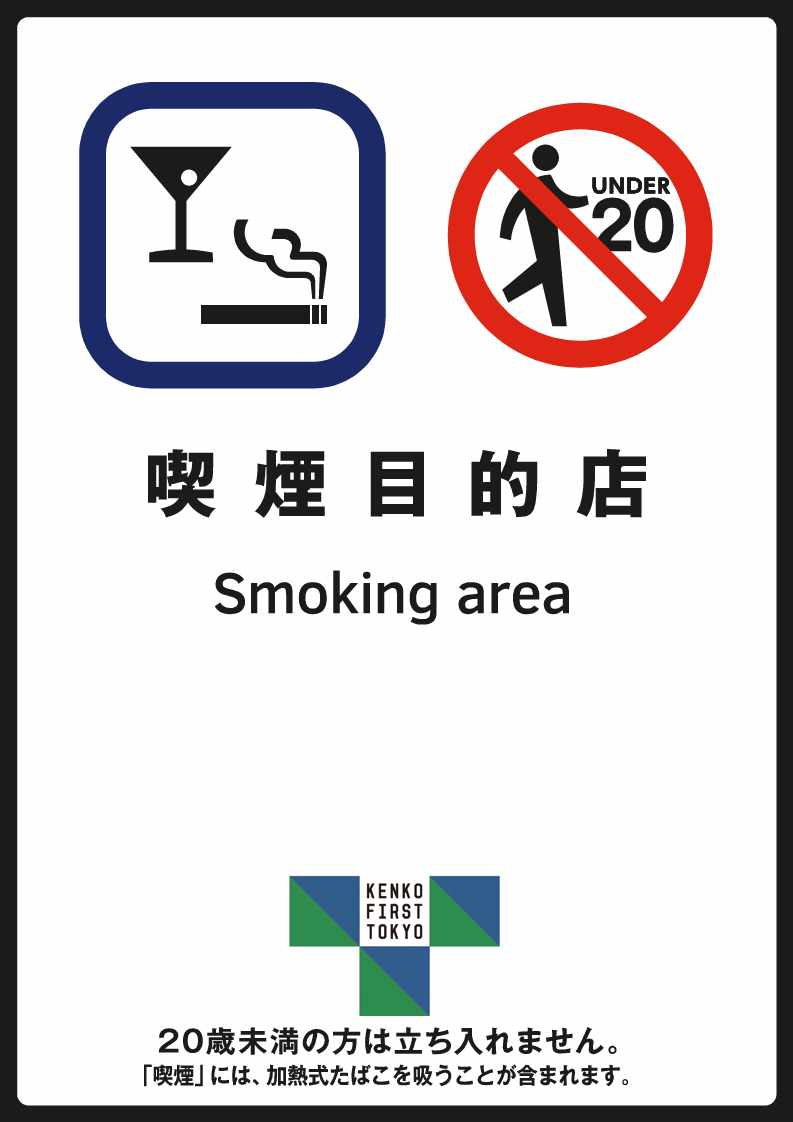 その場所が「喫煙可能店であること」及び「20歳未満の者は立ち入り禁止であること」の2点が一目でわかるようにする必要があります。