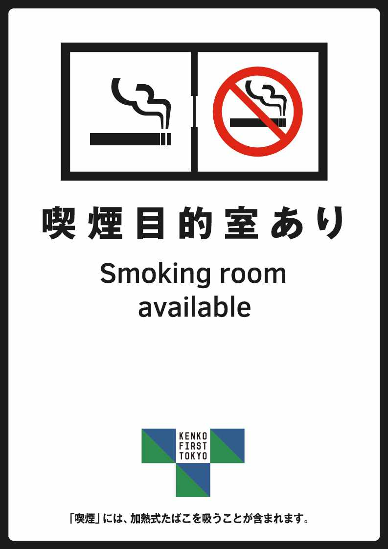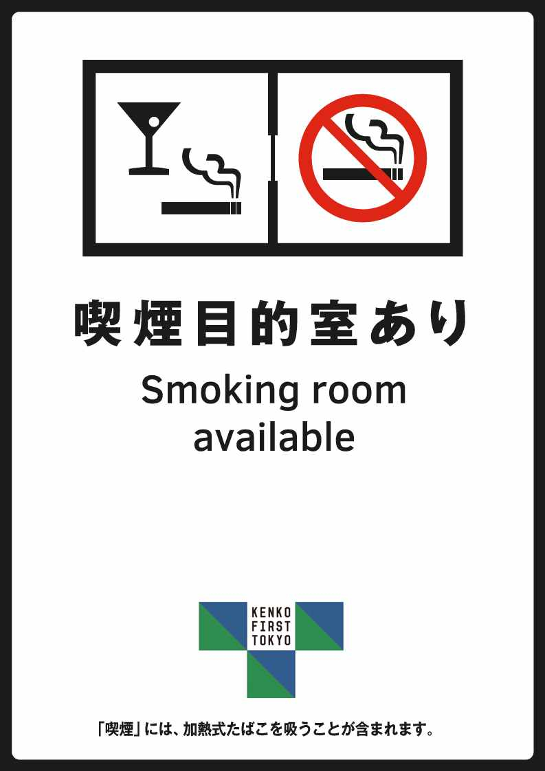 加熱式たばこ専用喫煙室…加熱式たばこに限り、吸いながら飲食等できる喫煙室