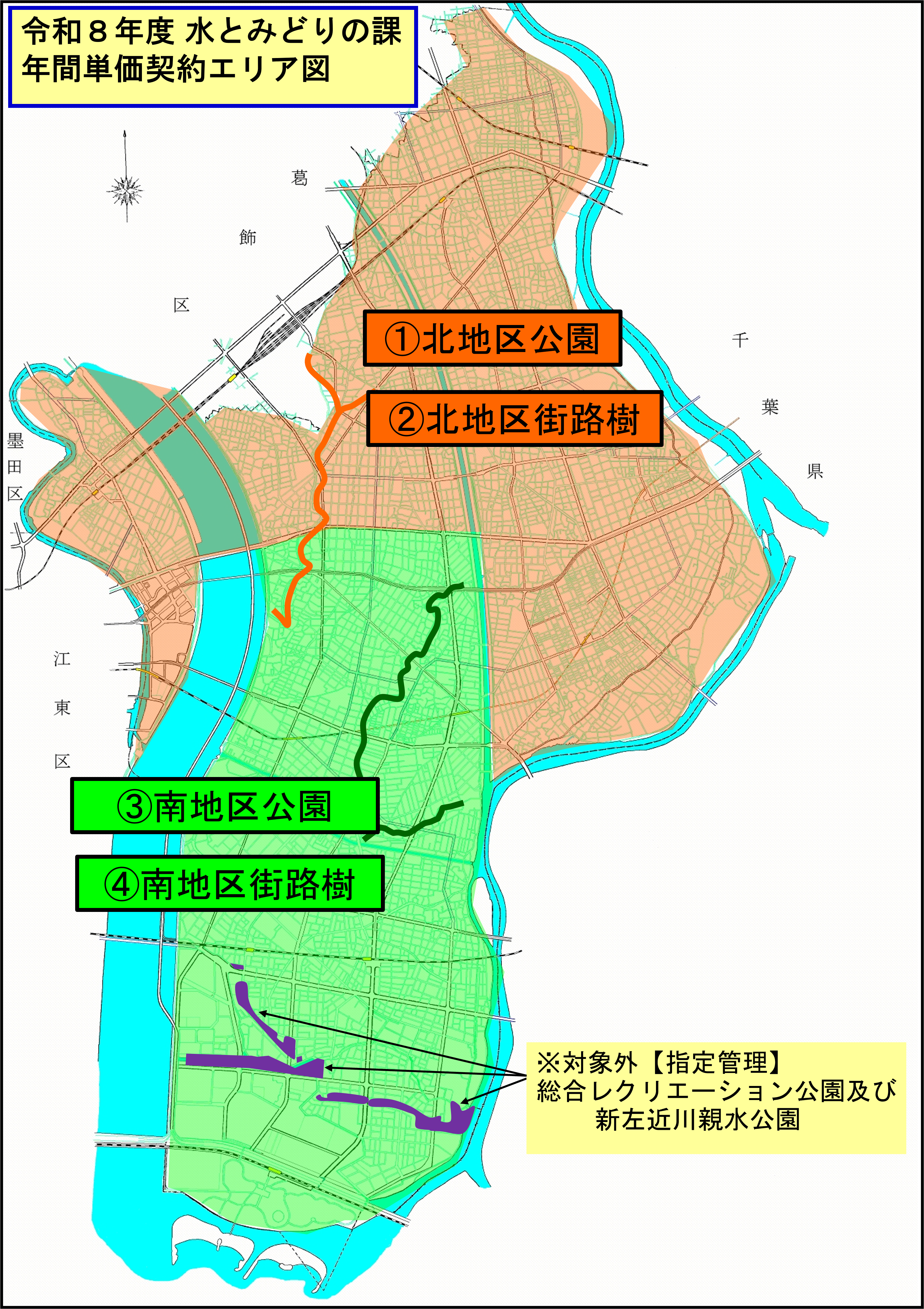 (注)1土木維持工事に関しては、1北地区公園、2北地区街路樹、3南地区公園、4南地区街路樹の4つに分けて、業種ごとに「順次指名」とします。