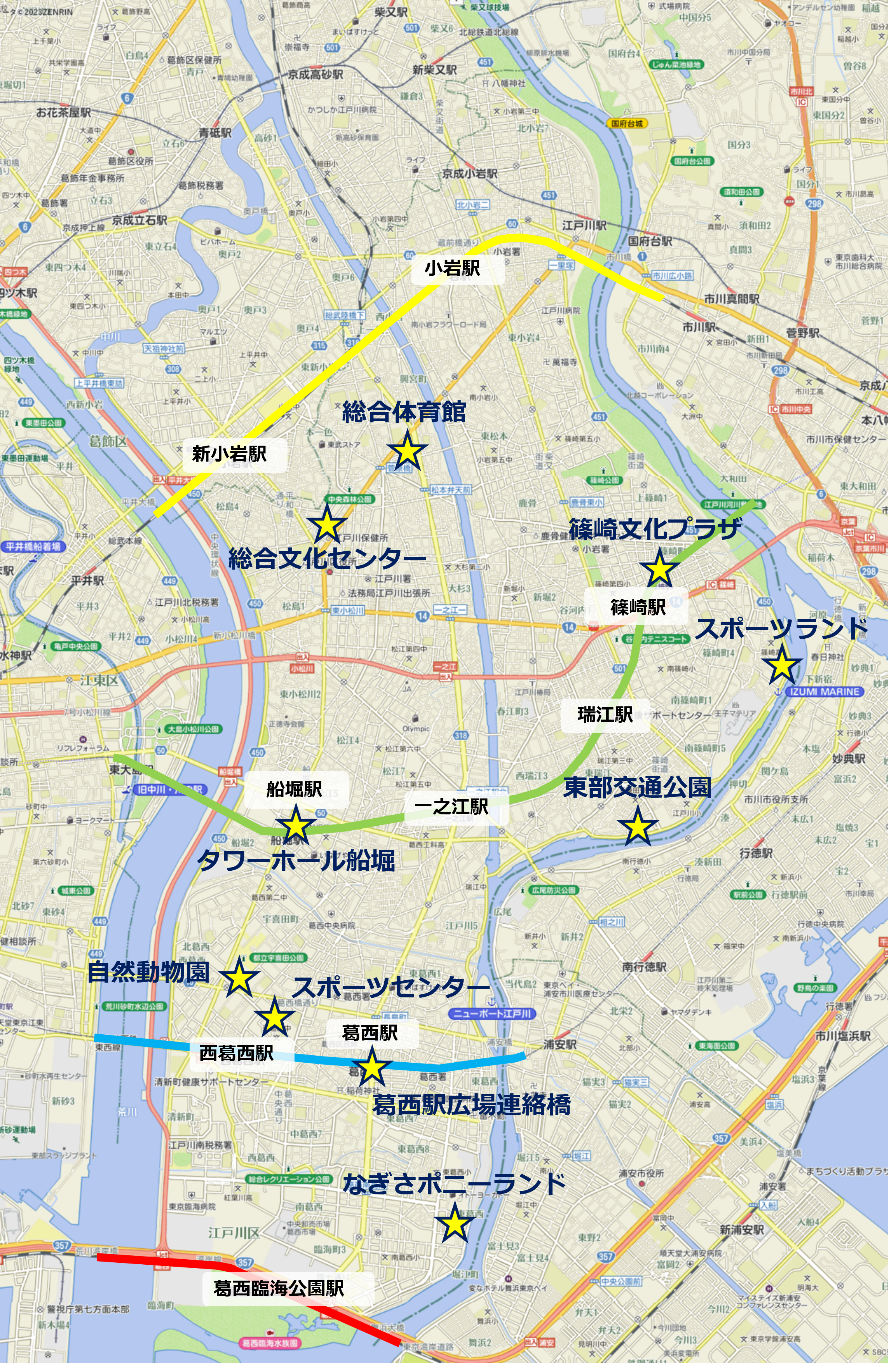 各施設の位置は下記、施設例マップをご参照ください。