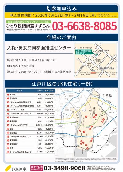 トップページ > 江戸川区イベントカレンダー > ひとり親家庭のためのJKK東京住宅相談会