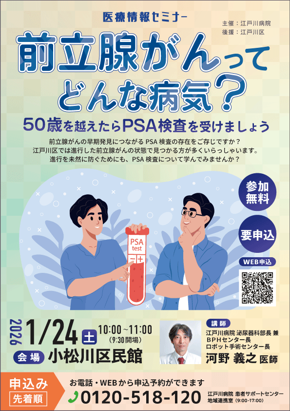 トップページ > 江戸川区イベントカレンダー > 医療情報セミナー「前立腺がんってどんな病気?~50歳を越えたらPSA検査を受けましょう~」