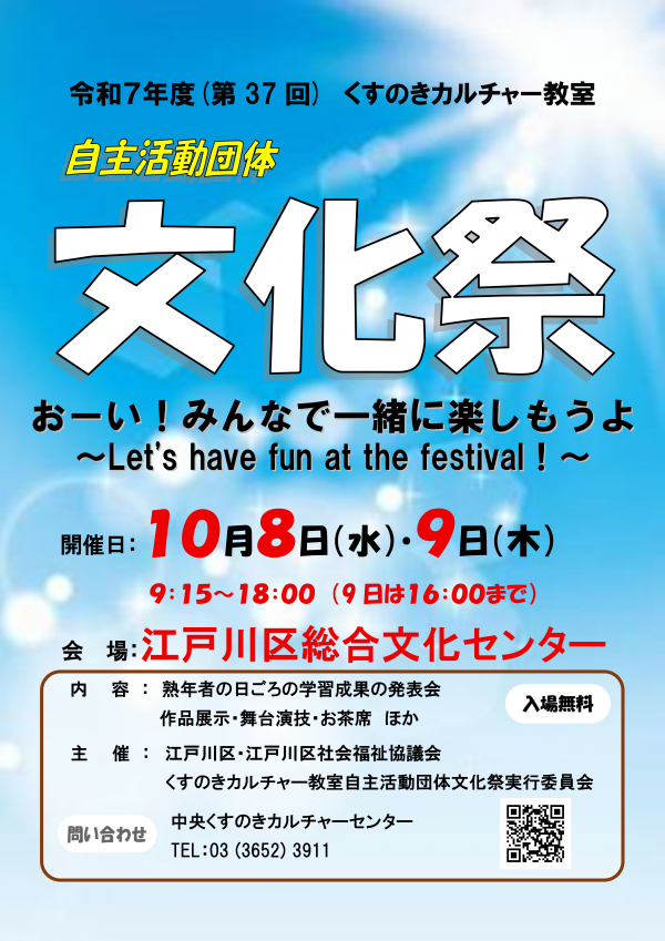 トップページ > 江戸川区イベントカレンダー > くすのきカルチャー教室「自主活動団体文化祭」