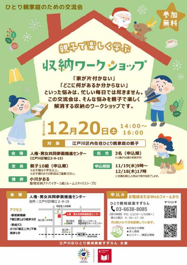 トップページ > 江戸川区イベントカレンダー > ひとり親家庭のための交流会~親子で楽しく学ぶ収納ワークショップ~