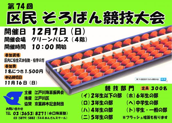 トップページ > 江戸川区イベントカレンダー > 第74回区民そろばん競技大会