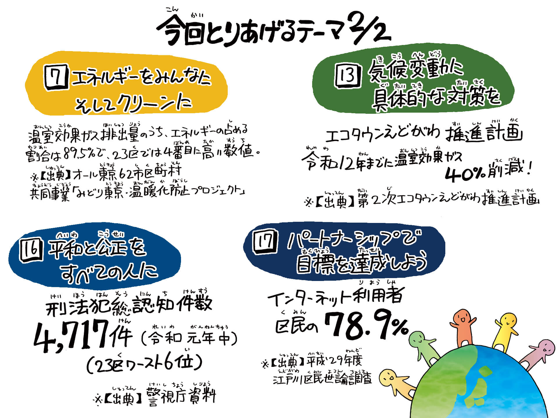 斉藤区長からSDGsの概要や区の考え方について説明したのち、区の担当者が世界と江戸川区の現状を対比させながら説明しました。
