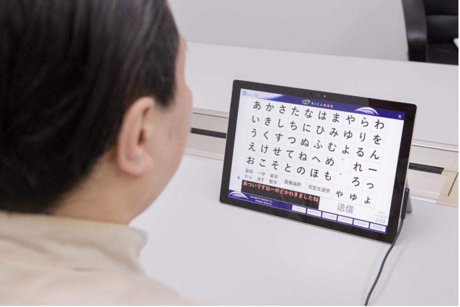 はい、私たちの持つ画像解析技術を利用した製品です。リカナスは筋ジストロフィーやALSといった四肢が動かない障害を持つ方が、「目線」を使ってタブレット端末等に文字を入力できるシステムです。