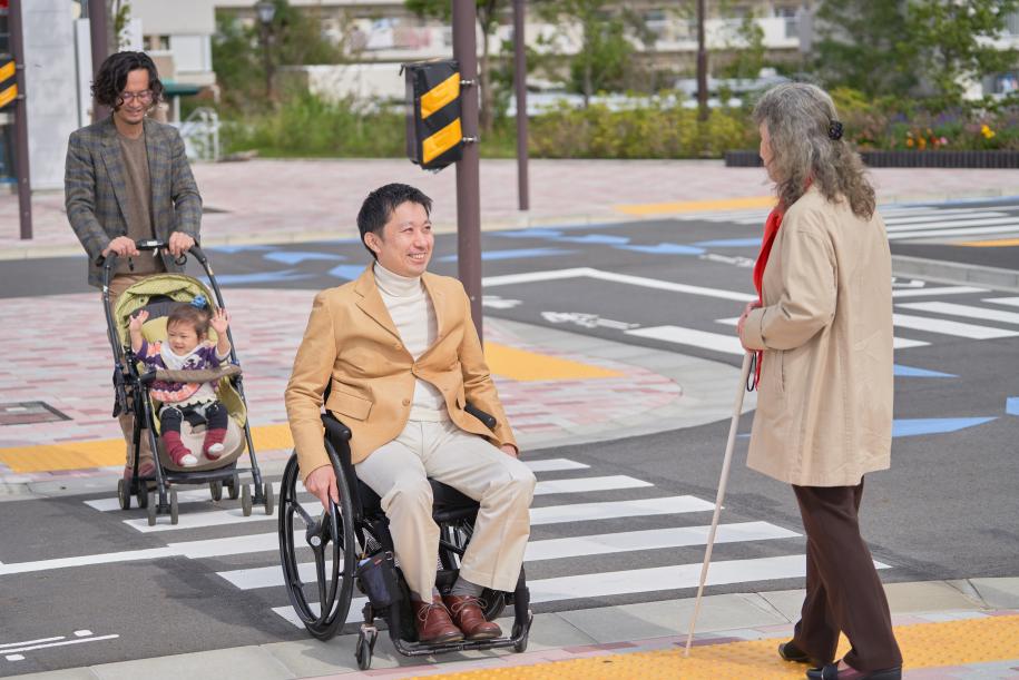 区内の道路を利用する際に、歩道と車道の段差について意識したことはあるでしょうか。車いすやベビーカーなどを使う方にとって、段差は少なければ少ないほど安心して道路を利用できます。一方で、この段差こそが命を守るために不可欠という方もいることをご存じでしたか?あらゆる立場の方々が安全に利用できるユニバーサルデザインの道路を目指す、区の取り組みをご紹介します。